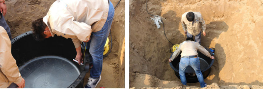 2.轉動井座,注意井座與基坑底部水平垂直度。