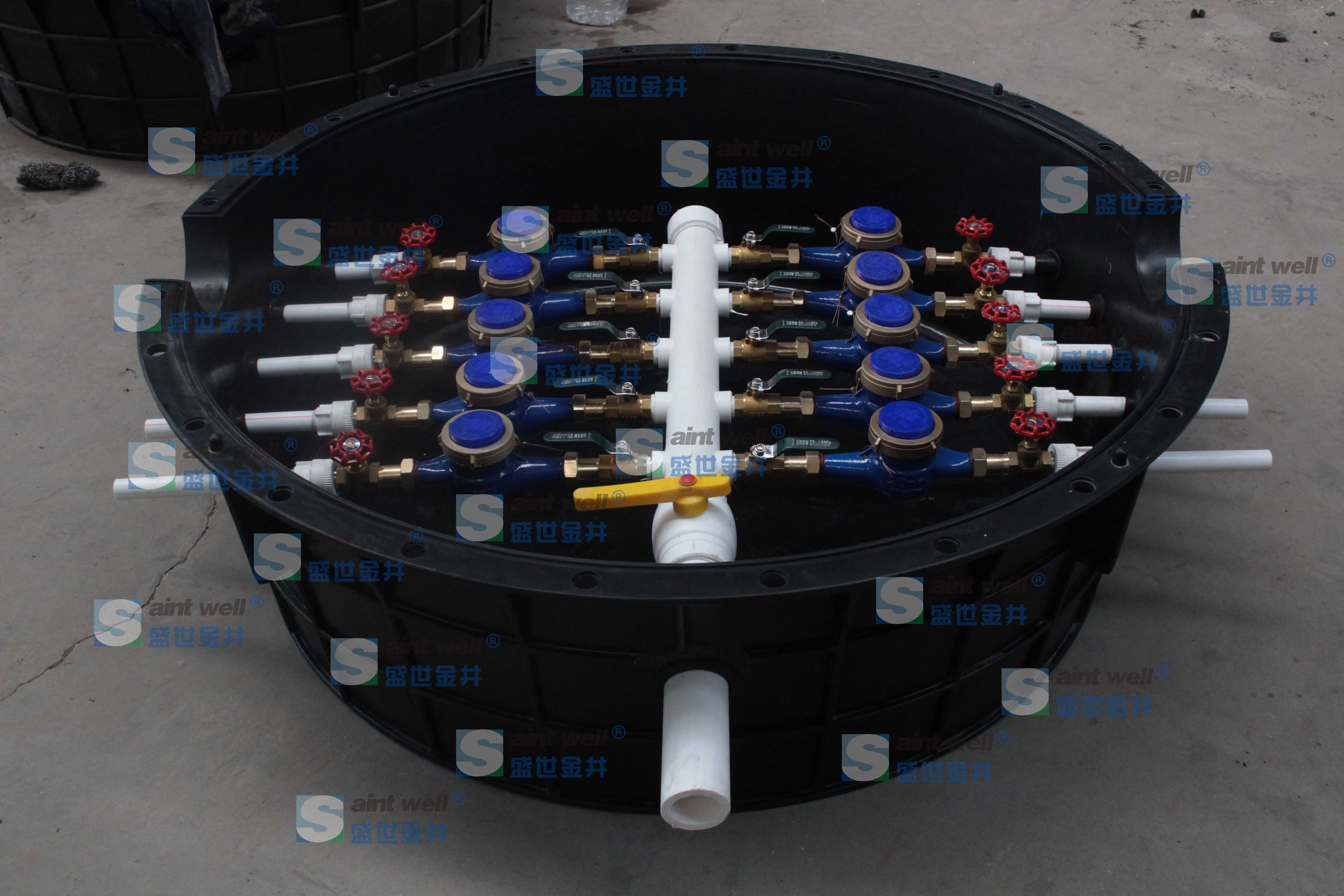 1.2米的水表閥門井底部平鋪可以滿足10塊水表的安裝,添加井室后,還可以滿足更多的水表安裝。