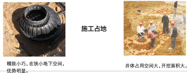 以2人安裝20口井費(fèi)用對比。復(fù)合塑料水表閥門井,耗時(shí)數(shù)1天,磚砌井10天,鋼筋混凝土井 5天;人工費(fèi)用(以200元/天計(jì))復(fù)合塑料水表閥門井400元,磚砌井4000元,鋼筋混凝土井 2000元;綜合使用成本塑料檢查井與磚砌井及鋼筋混凝土井相比,人員、時(shí)間成本低。